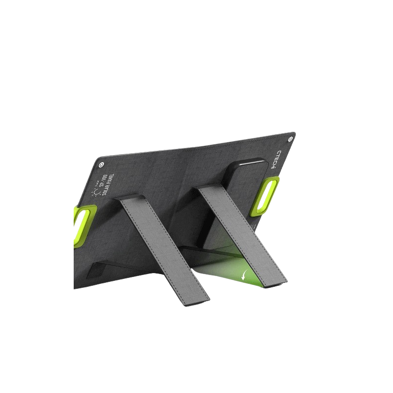 Сонячна панель SP-100 від CTECHi — це портативна панель на 100 Вт із високоефективними монокристалічними елементами. Вона легка, зручна в транспортуванні, має міцний алюмінієвий каркас і вбудовані підставки для оптимального розташування під сонцем. Панель здатна швидко перетворювати сонячне світло на енергію, забезпечуючи до 100 Вт в ідеальних умовах, що робить її продуктивнішою за конкурентів. SP-100 також обладнана контролером заряду для захисту пристроїв від перенапруги та перезаряджання, що робить її простою та надійною у використанні.